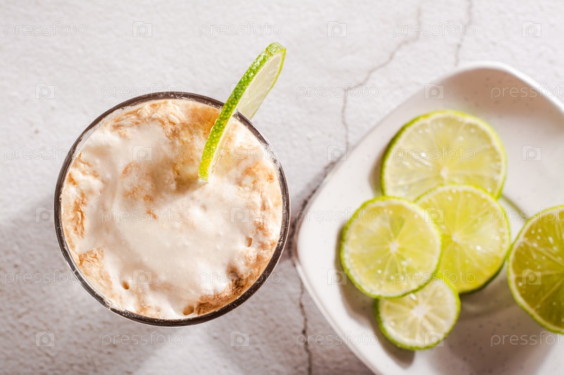 Крупный план домашней грязной газировки с колой и лаймом в стакане на столешнице