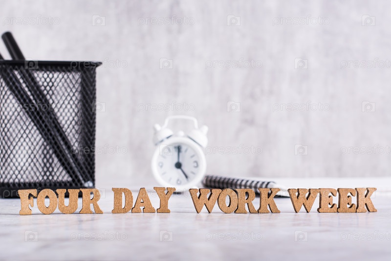 Четырехдневная рабочая неделя слово из деревянных букв на рабочем столе