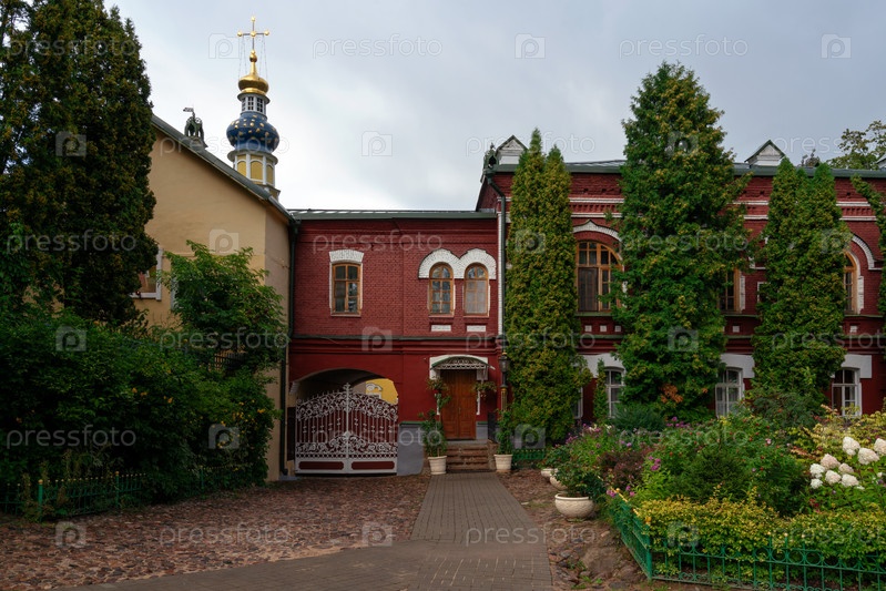 Вид на трапезную и Лазаревскую церковь Свято-Успенского Псково-Печерского монастыря в летний день, Печоры, Псковская область, Россия