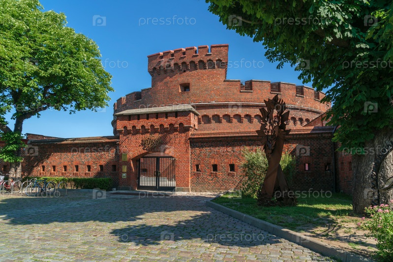 Калининград, Россия, 30.06.2022: Вид на Калининградский областной музей янтаря, расположенный в крепостной башне Дона, в солнечный летний день