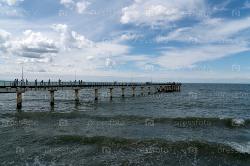 Вид на Балтийское море и причал с набережной морского курорта Зеленоградск, Калининградская область, Россия
