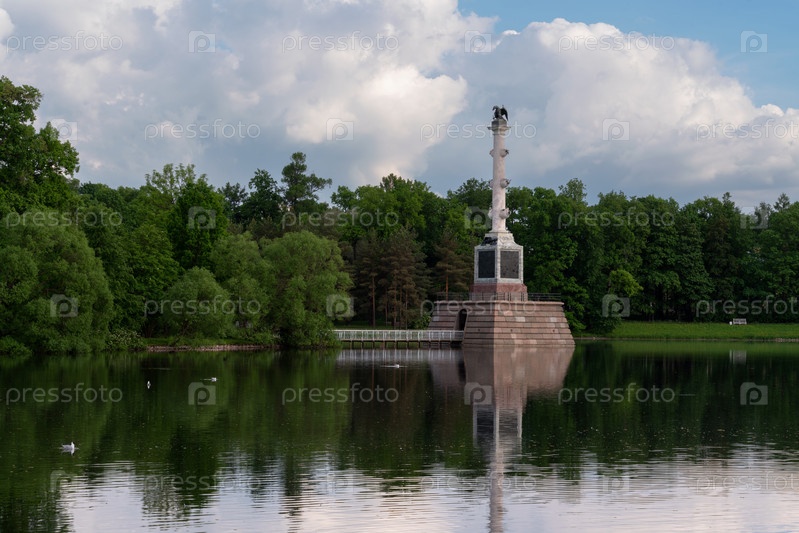 Чесменская колонна в Екатерининском парке в Царском Селе в солнечный летний день, Пушкин, Санкт-Петербург, Россия