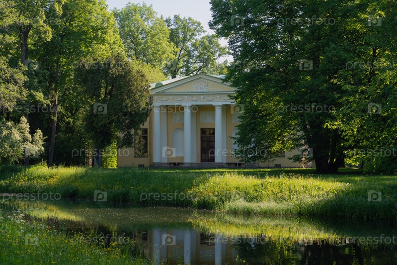Вид на павильон Концертного зала в Екатерининском парке Царского Села в солнечный летний день, Пушкин, Санкт-Петербург, Россия