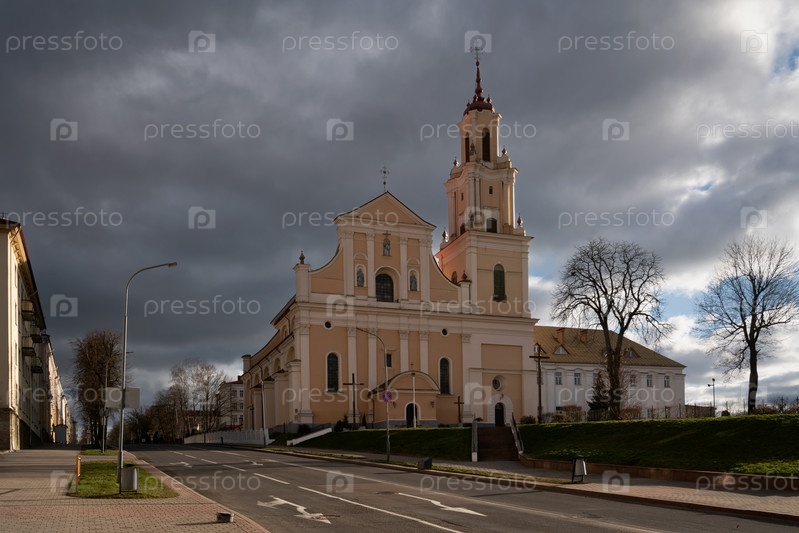Церковь Обретения Святого Креста (действующая католическая церковь) и монастырь бернардинцев в солнечный день, Гродно, Беларусь