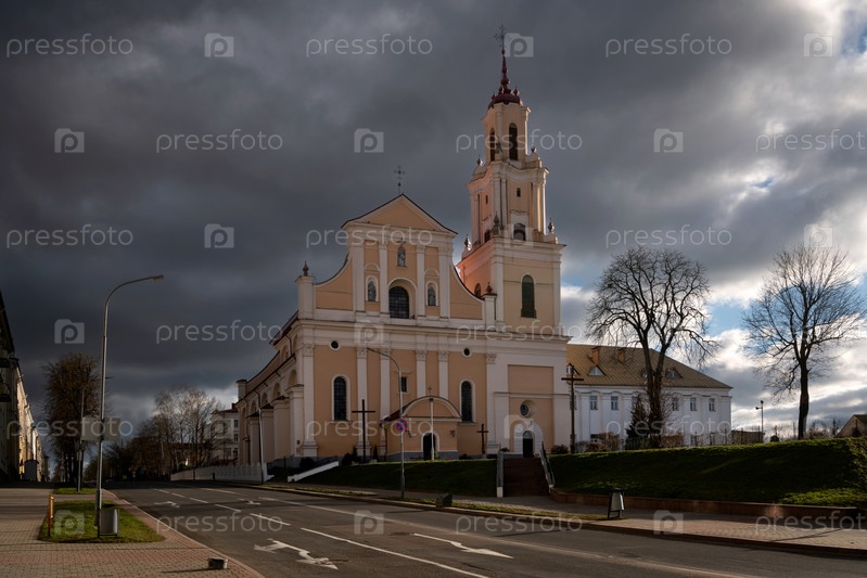 Церковь Обретения Святого Креста (действующая католическая церковь) и монастырь бернардинцев в солнечный день, Гродно, Беларусь