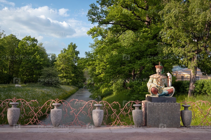Вид на Большой Китайский мост в Александровском парке в Царском Селе в солнечный летний день, Пушкин, Санкт-Петербург, Россия