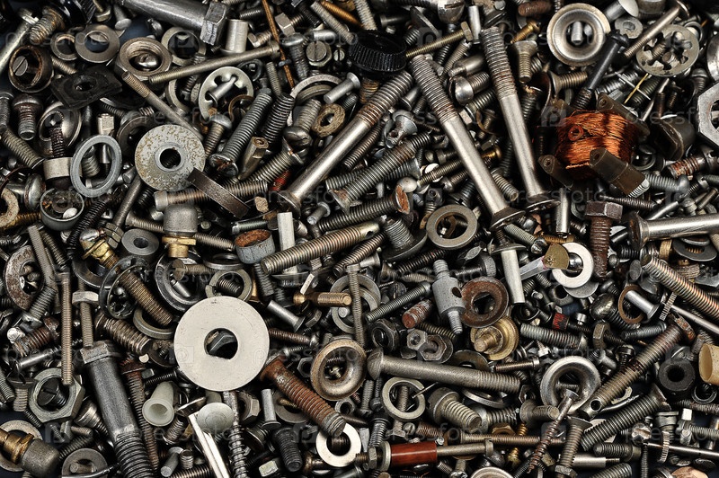 Куча железных гаек, болтов, деталей - абстрактный фон