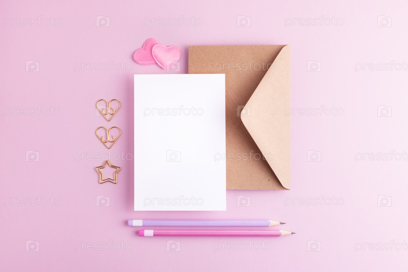 Креативная композиция на день святого валентина с пустой карточкой, вид сверху