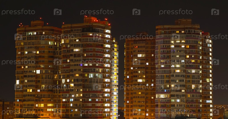 Свет в окнах многоэтажки. Ночной город. Жизнь в большом городе