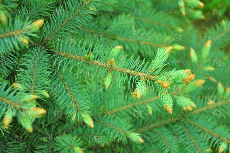 Фон из зеленых иголок голубой ели