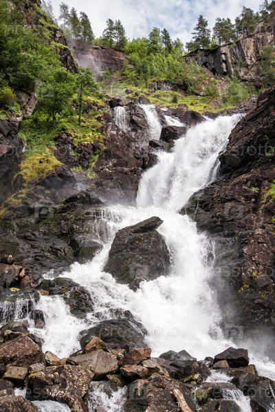 Каскад водопадов Лотефоссен, один из крупнейших водопадов Норвегии, Одда