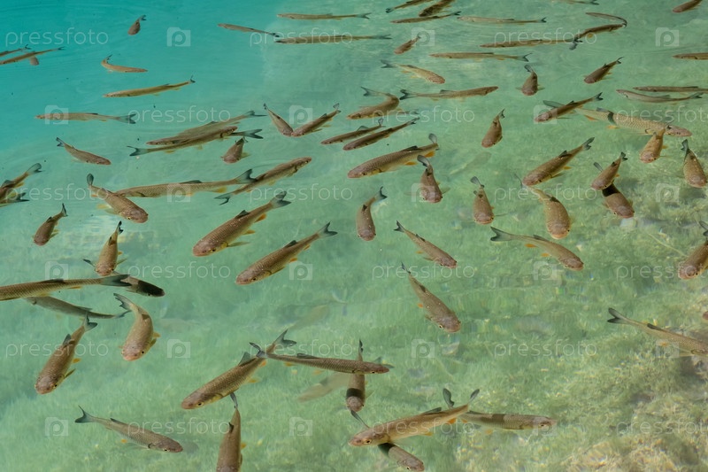 Стая рыбок плывет под водой