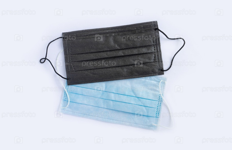 Пара стерильных медицинских масок черного и зеленого цветов