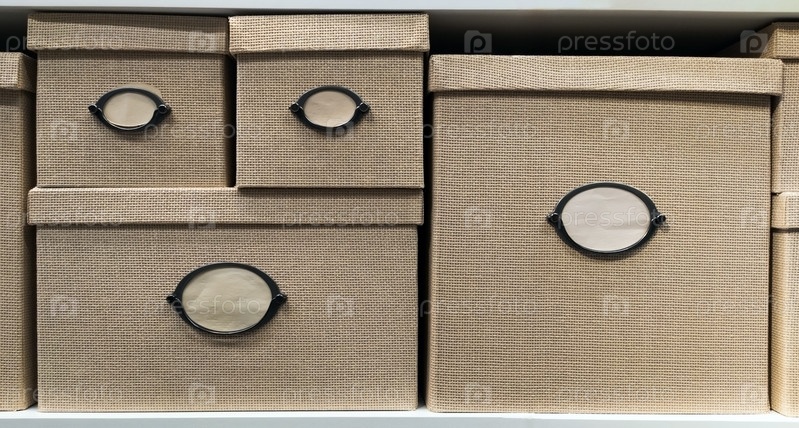 Бежевые плетеные коробочки с крышками и местом для подписи. Ящики для перемещения или хранения различных мелочей