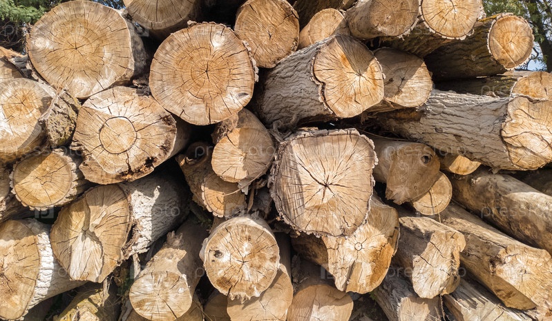 Поперечный разрез ствола дерева. Многие бревна лежат на земле. Дрова