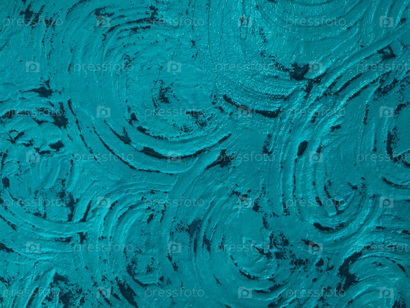 Декоративная текстура бирюзовой стены с закругленным узором. Стена с декоративной штукатуркой. Узор, сделанный пальцами
