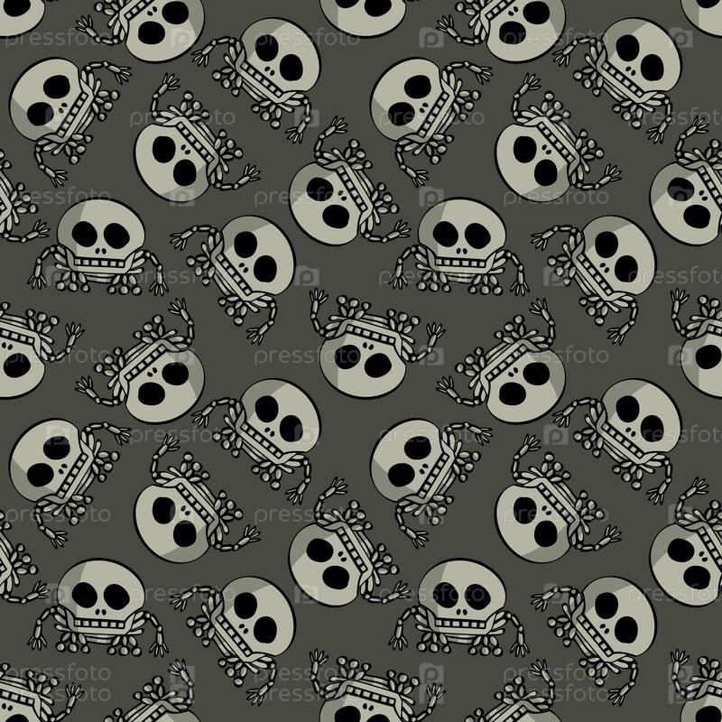 Бесшовная бесконечная текстура рисунка с рисунком страшных скелетов. Хэллоуин фон