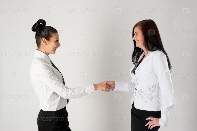 Две деловые женщины пожимают друг другу руки, закрывая сделку или партнерство