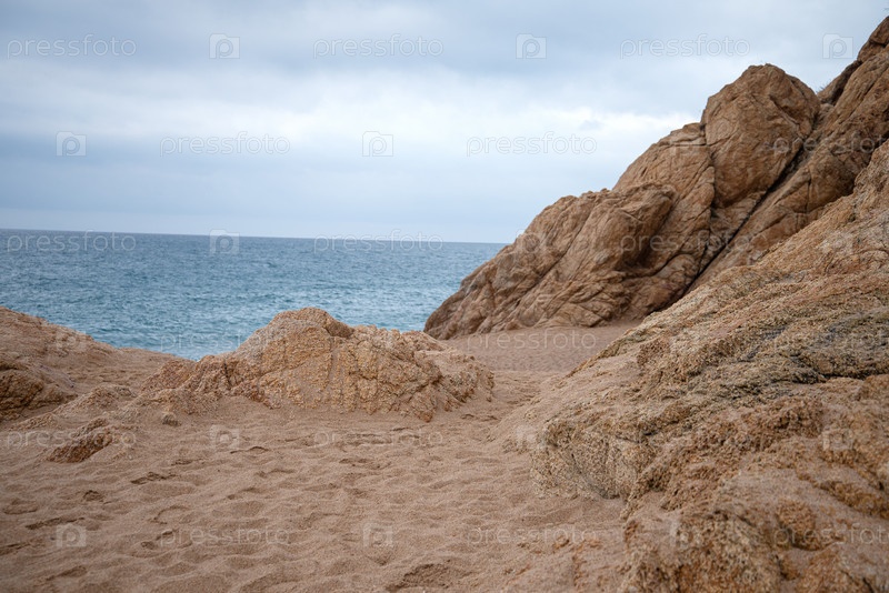 Скалистый морской берег в ветреный день