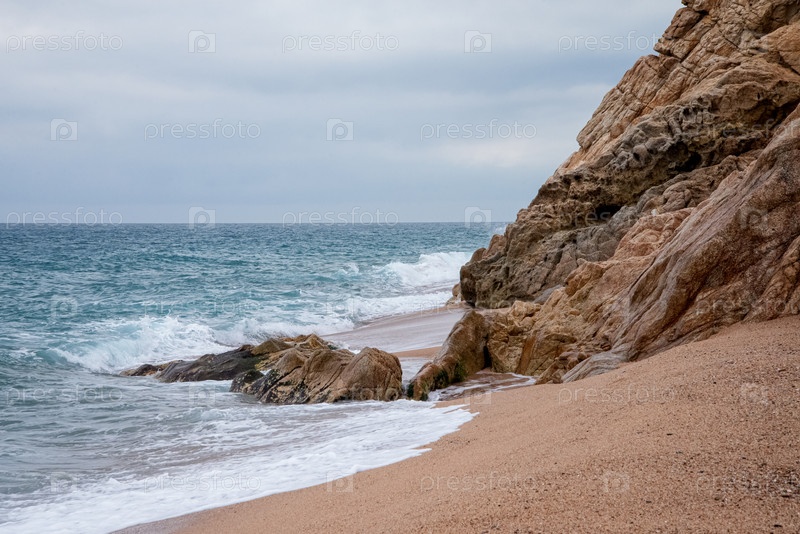 Скалистый морской берег в ветреный день