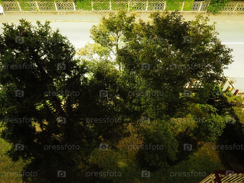 Вид на деревья ночью, зеленые листья