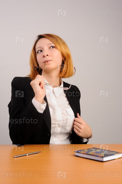 Молодая рыжеволосая деловая женщина за столом