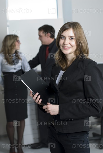 Привлекательная бизнес-леди на фоне коллег в офисе