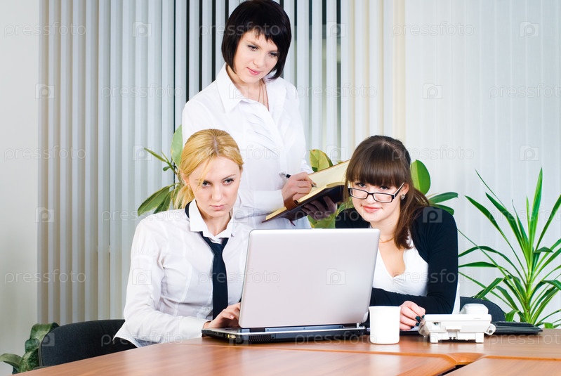 Деловые женщины обсуждают проект на ноутбуке