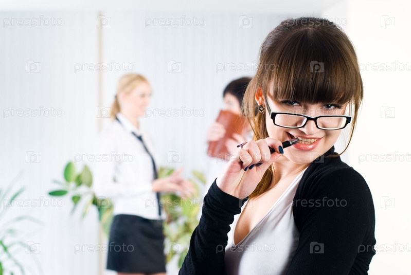 Довольно молодая деловая женщина в офисе