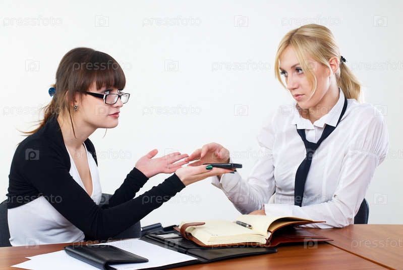 Встреча привлекательных молодых деловых женщин в офисе