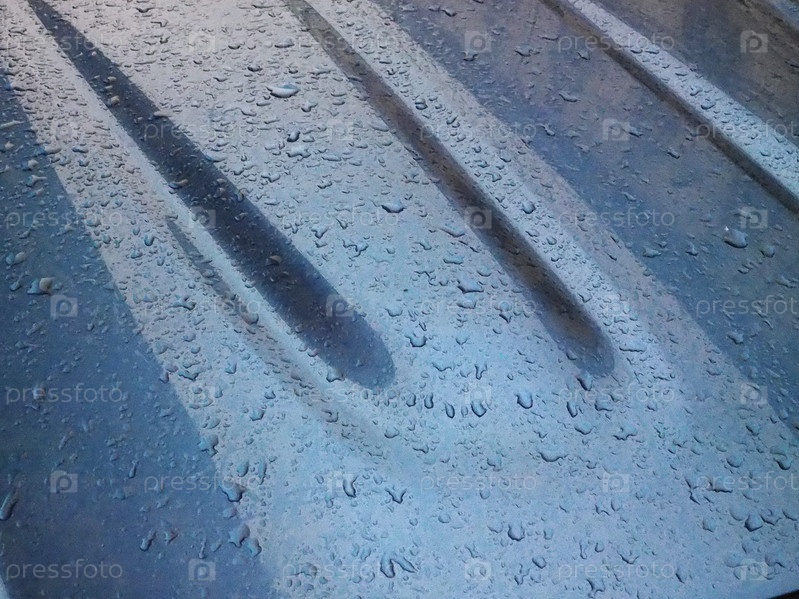 Капли дождевой воды на синей металлической текстуре капота автомобиля полезны в качестве фона