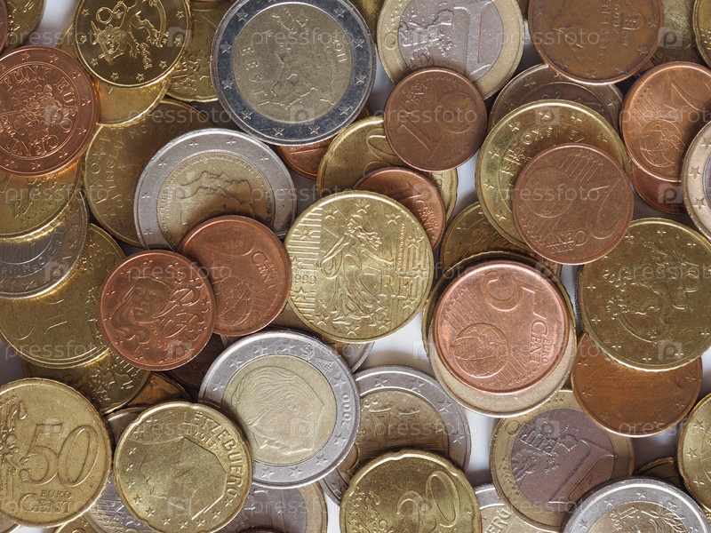 Монеты евро деньги (EUR), валюта Европейского союза полезна в качестве фона