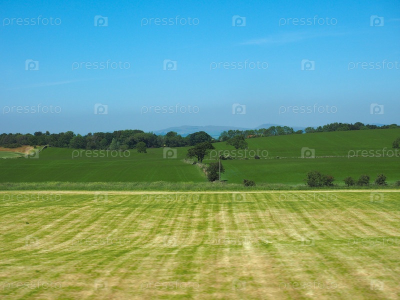Панорама сельской местности из поезда между Эдинбургом и Глазго
