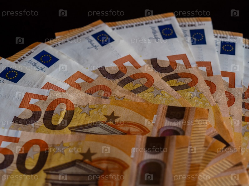 Банкноты евро деньги (EUR), валюта Европейского Союза