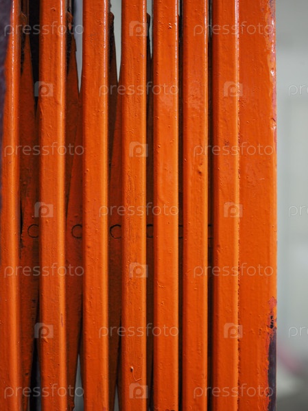 Старый стальной металлический ставень, окрашенный в оранжевый цвет