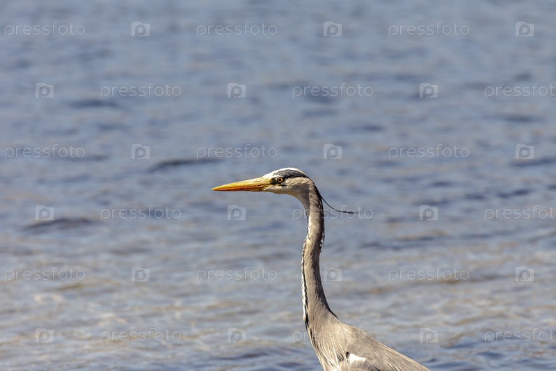 Большая серая смола (Ardea cinerea) в крупном плане (Греция, остров Кефалония)