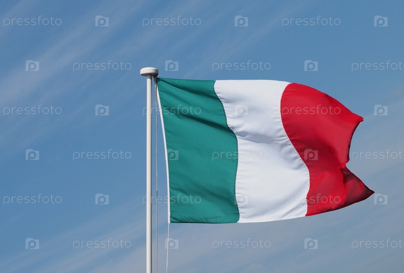 Итальянский национальный флаг Италии, Европы над голубым небом