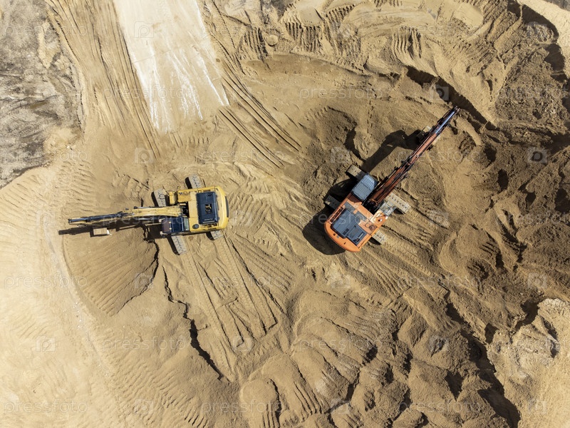 Желтый и оранжевый экскаватор работает на строительной площадке