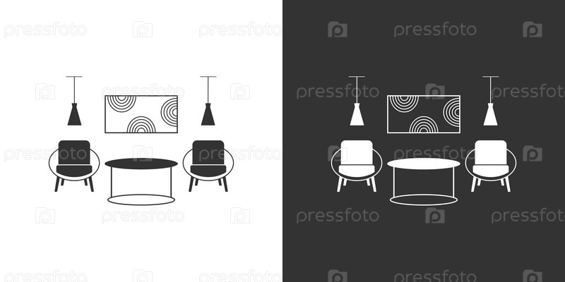 Интерьер современной гостиной. Мебельная иконка. Белая и черная