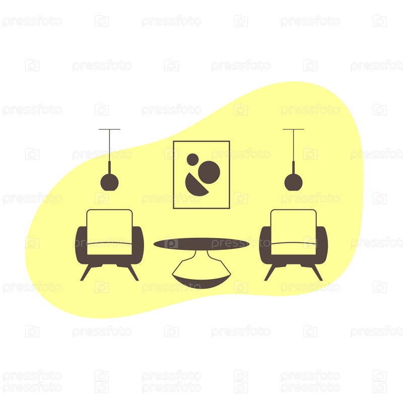 Интерьер в холле с двумя креслами и журнальным столиком. Мебельная иконка