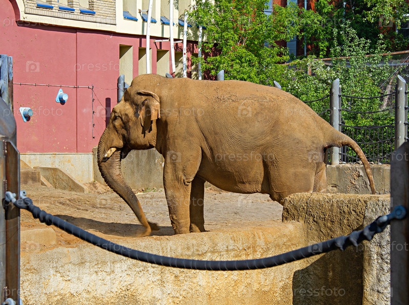 Старый слон в вольере Московского зоопарки - май 2023 года