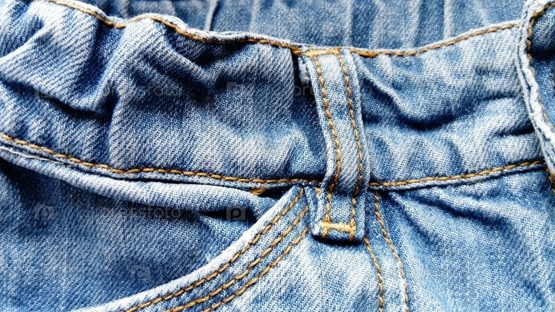 Верх джинсов. Фрагмент ремня, кармана и ремешка. Грубая джинсовая ткань и грубые швы толстыми нитками
