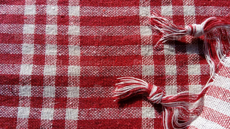 Кухонная скатерть в красную и белую клетку с двумя кисточками из ниток