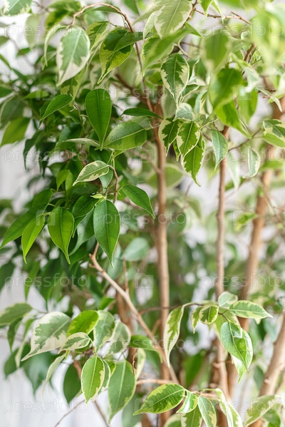 Зеленые листья домашнего растения фикус бенджанин