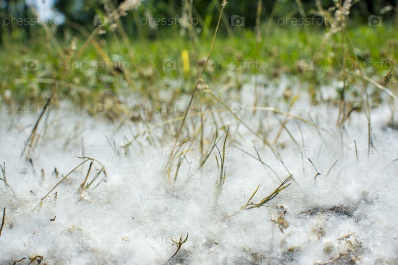 Тополиный пух в траве