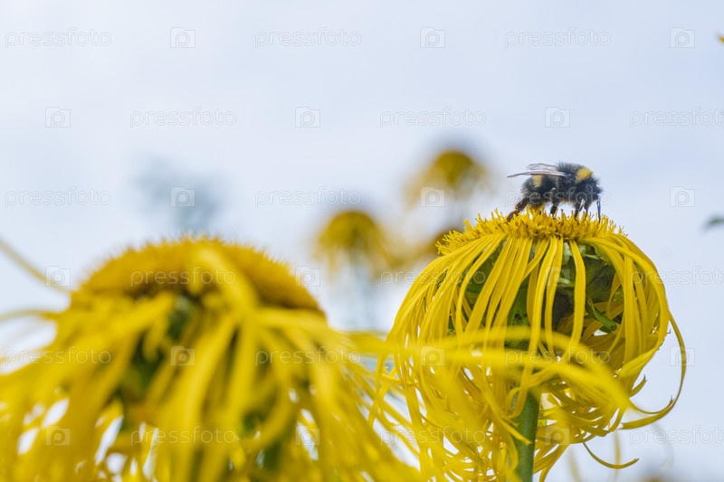 Шмель собирает нектар с красивого цветка
