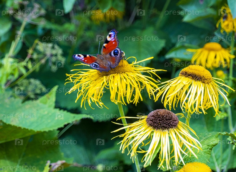Бабочка собирает нектар с красивого цветка