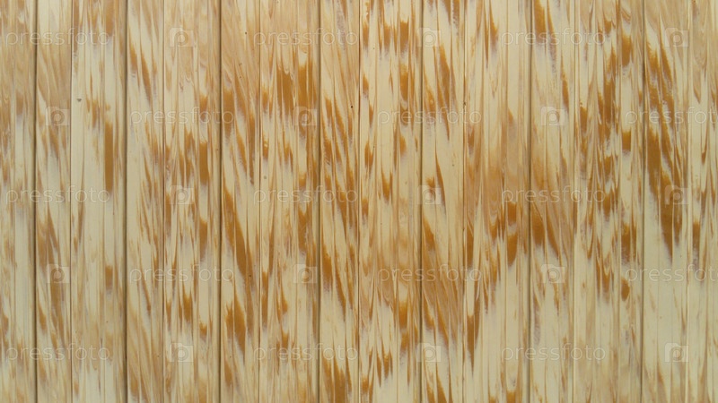 Оконные пластиковые жалюзи с иллюзией текстуры дерева. Размытые абстрактные пятна светло-коричневого цвета на желто-бежевом фоне. Светлый фон с вертикальными полосами. Красивая нежная размытая полоска