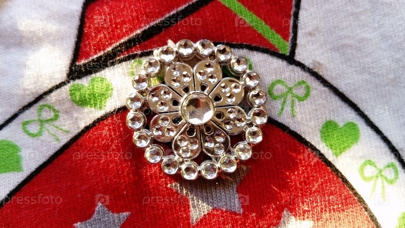 Блестящий декоративный элемент для крепления на ткань. Серебряная брошь со стеклянными камнями. Детская игрушка - украшение для кукол, бижутерия