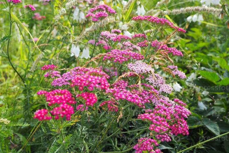 Achillea millefolium, тысячелистник или обыкновенный тысячелистник - цветочное растение семейства сложноцветных. старинный перец, чертова крапива, сангвинария, тысячелистник, зверобой солдатский и тысячелистник. розовый цвет